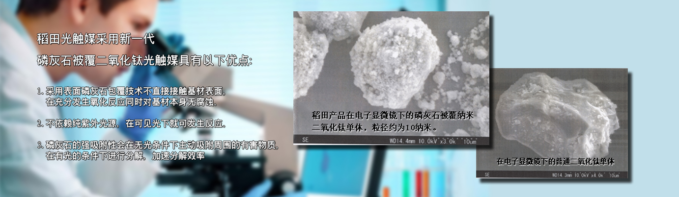 在認(rèn)識【光觸媒】之前,要先了解什么是【觸媒】。觸媒是日語,翻譯成中文叫催化劑。催化劑是能在化學(xué)反應(yīng)中加速反應(yīng)速率,而本身在反應(yīng)前后并不發(fā)生變化的物質(zhì)。光觸媒是一種以納米級二氧化鈦為代表的具有光催化功能的光半導(dǎo)體材料的總稱。它涂布于基材表面,在光線的作用下,產(chǎn)生強(qiáng)烈催化降解功能:能有效地降解空氣中有毒有害氣體;能有效殺滅多種細(xì)菌,并能將細(xì)菌或真菌釋放出的毒素分解及無害化處理;同時(shí)還具備除臭、抗污、凈化空氣等功能。 稻田光觸媒采用【磷灰石被覆納米二氧化鈦分子結(jié)構(gòu)】,具有吸附、分解、去除、無毒化的特質(zhì)。表面磷灰石包覆技術(shù)不直接接觸基材表面,在充分發(fā)生氧化反應(yīng)的同時(shí)對基材本身無腐蝕。其中的【磷灰石】成分,具有強(qiáng)大的吸附能力,可以隨時(shí)吸附空氣中的異味源、細(xì)菌、病毒等有害物質(zhì),再交由【二氧化鈦】在光源下進(jìn)行分解反應(yīng),因此能夠24小時(shí)吸附、分解